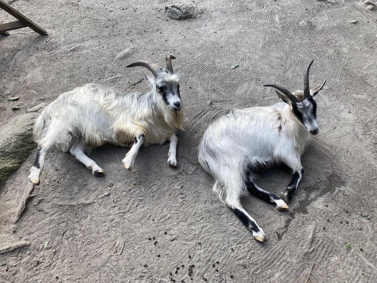 Wie jeder anständige Tierpark hat auch dieser einen kleinen Streichelzoo. Oder besser: ein Gatter voller großer und kleiner Ziegen, die sich über Zuwendungen der kleinen Besucher freuen würden, wenn die Kleinen das dürften. Pech gehabt, hier heißt es „Nur Angucken aber nicht anfassen!“ Was nicht heißt, dass es den Ziegen hier schlecht geht. Anders als in vielen Zoos und Tierparks haben die Ziegen hier recht viel Auslauf, den die Tiere auch nutzen und dabei wie verrückt blöken. Das nervt, klingt aber immer noch erträglicher als das Geschrei von dutzenden Kleinkindern.