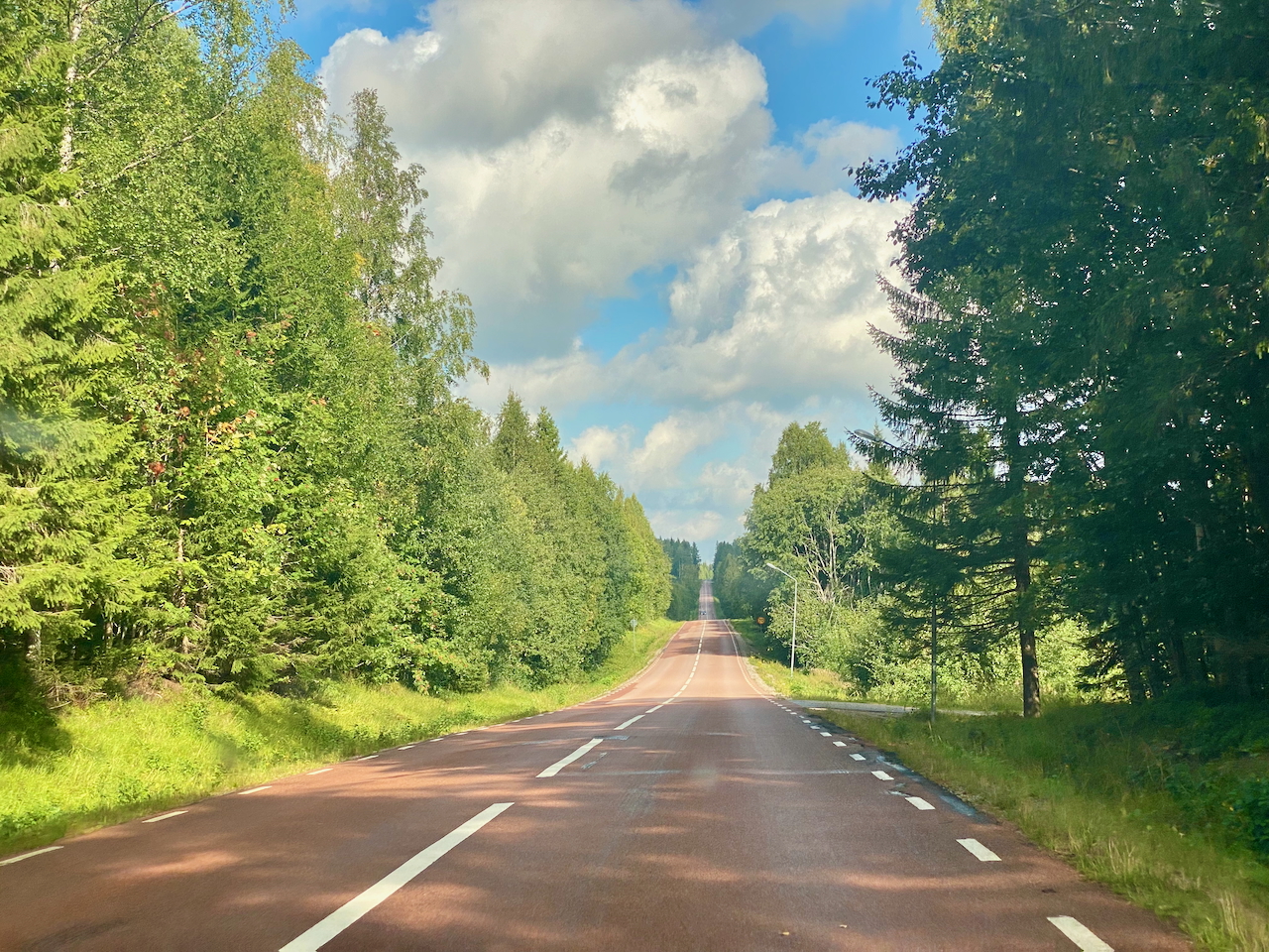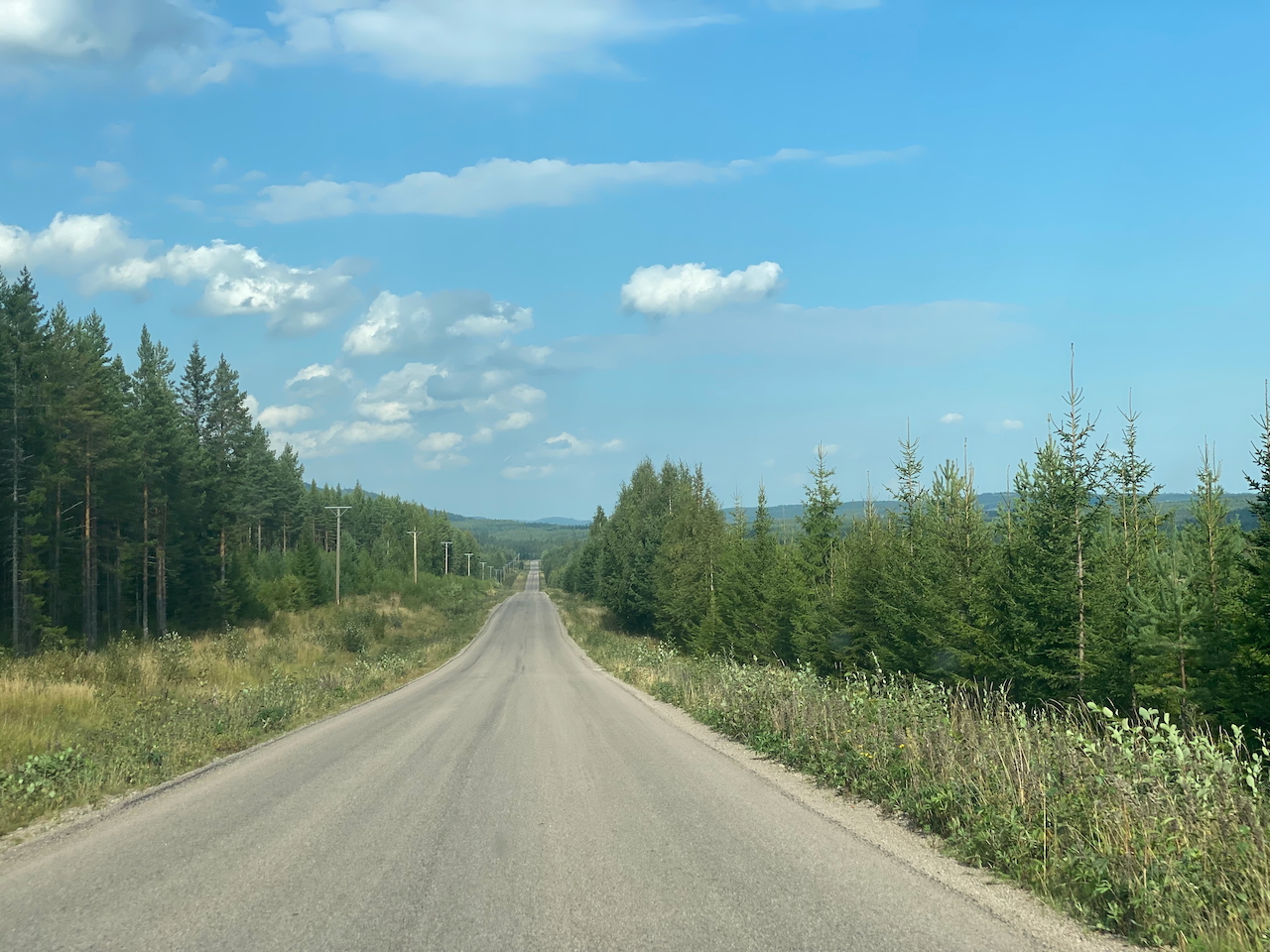 Diese Straße könnte sich auch irgendwo in Nordamerika oder Sibirien befinden. Immer wieder bekommen wir einen weiten Ausblick auf die nicht enden wollende Straße vor uns, rechts und links flankiert von ebenso endlosen Wäldern. Menschliche Behausungen sind Mangelware und entsprechend wenig Verkehr ist unterwegs. Selbst das heilige Internet hat sich von diesem Landstrich abgewendet. Im Autoradio ist immer wieder Stille angesagt, denn ohne Internet gibt es auch kein Internetradio und ohne Radio keine Musik. Bei aller Liebe zur friedlichen Ruhe dieses Landstriches, aber dies ist kein Ort, an dem man mit einer Fahrzeugpanne liegen bleiben möchte.