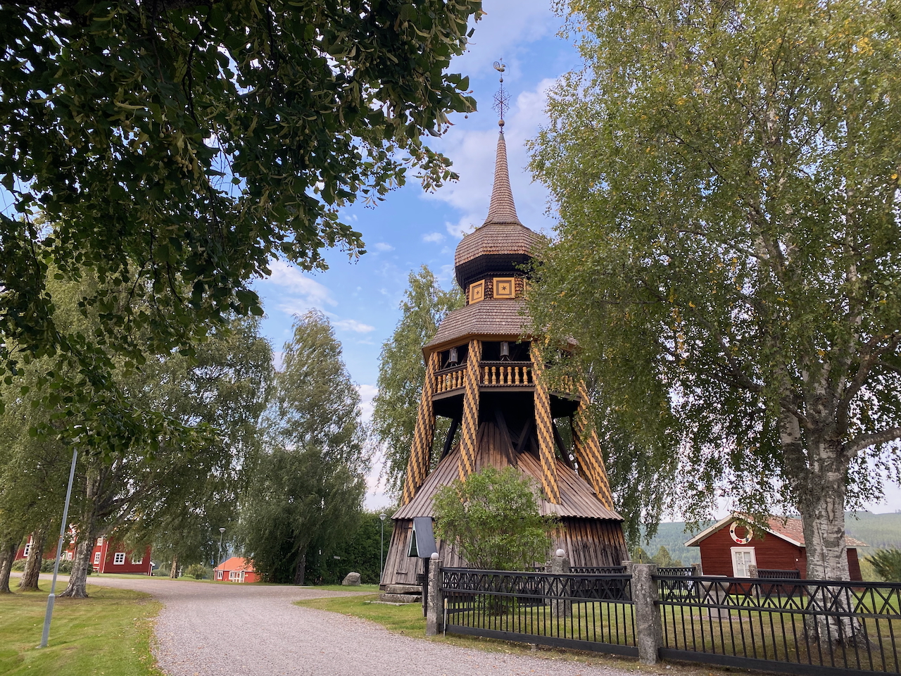 Neben unserem Hotel steht eine alten Kirche. Typisch für viele ländliche Kirchen ist, dass Kirchen einen externen Glockenturm besitzen, der wenige Meter neben dem Kirchengebäude steht und meist komplett aus Holz gefertigt ist. Der Glockenturm hier in Undersvik schaut ungleich schmucker aus als viele andere der eher schlichten dunkelbrauen Glockentürme. Viele Schnitzereien machen den Holzturm zu einer kleinen Sehenswürdigkeit.