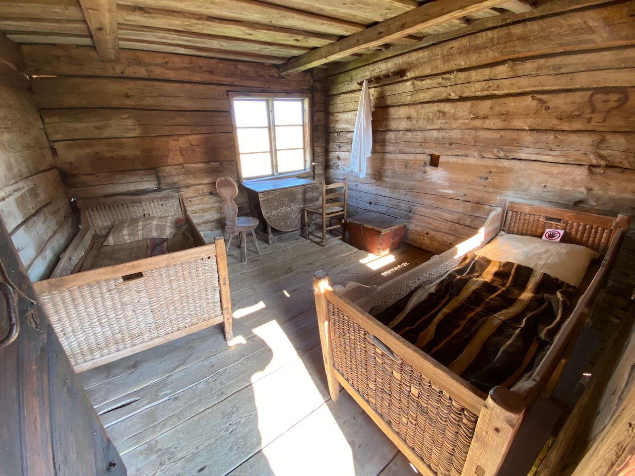Nur ein paar Meter weiter findet man sich auf einem rundum geschlossenen Bauernhof wieder. Über eine Außentreppe gelangt man zu einer kleinen Kammer, in der vor vielen Generationen die Knechte des Hofes untergebracht wurden. Das Leben, dass die Knechte damals führten, kann man sich heute kaum noch vorstellen. Jedwede Form der elektronischen Unterhaltung war noch nicht erfunden. Aber wozu auch, es gab eh keine Freizeit. Als Knecht hat man von früh bis spät zu schuften. Als Dank lies man ihn nicht verhungern. Oder so ähnlich, keine Ahnung, ich war nicht dabei. Wenn man das karg ausgestattete Zimmer sieht, dann waren die Kerle, die hier hausen mussten, nicht zu beneiden. Besonders in den kalten Wintern möchte man nicht Knecht gewesen sein.