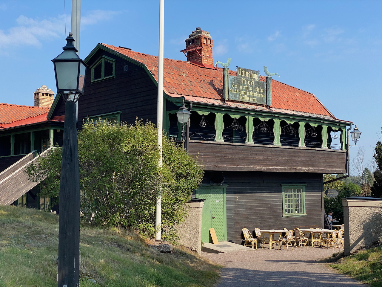 Direkt hinter dem Tingshügel befindet sich das Cafe Odinsburg. Ein sehr sehenswertes altes schwarzes Gebäude, in welchem seit vielen Jahrzehnten die Gäste von Gamla Uppsala bewirtet werden. Nach so viel frischer Luft während unseres Spaziergangs verspüren wir inzwischen ein kleines Hungergefühl und lassen uns nicht davon abschrecken, dass im Café Selbstbedienung angesagt ist.