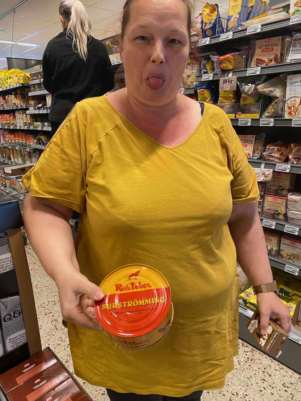 Was bleibt uns übrig, als zu hoffen, dass das Einkaufszentrum in Uppsala nicht das letzte vor norwegischen Grenze war. Noch einmal nach Uppsala umzukehren lässt mein Dickschädel nicht zu. Wir folgen deshalb weiter dem Reichsweg 55 und nicht der Aufforderung des Navis auf irgendeine schmale Straße abzubiegen. Irgendwann muss schließlich ein ICA, Coop oder Lidl an dieser Landstraße auftauchen. Und so ist es. Etwa zehn Kilometer später verlassen wir in Örsundsbro den Reichsweg und suchen den örtlichen ICA auf. Wir decken uns mit einigen Lebensmitteln ein und kommen an einem Kühlregal mit Surströming-Dosen vorbei. Sollten wir eine davon kaufen? Haben ist bekanntlich besser als brauchen und wer weiß wozu sonst diese legendäre Fischkonserve gut sein könnte? Hier in Schweden würden wir diese Dose allerdings nie und nimmer öffnen und daheim brauchen wir diese Bio-Waffe schon gar nicht. Wem sollten wir eine Dose des vergorenen Fisches schenken? Uns fällt niemand ein, der eine solch apokalyptische Strafe verdient hat. Unvorstellbar dieser Schreck beim Öffnen der Dose und der Sorge um die weitere Bewohnbarkeit der Wohnung. All das, weil der Ahnungslose in der Dose einen harmlosen Inhalt wie Hering in Tomatensoße vermutete. Nein, der Surströming bleibt wo er ist. Statt dessen kaufen wir uns zwei Stücken Kuchen und wagen uns schließlich an die letzten Kilometer des Tages.
