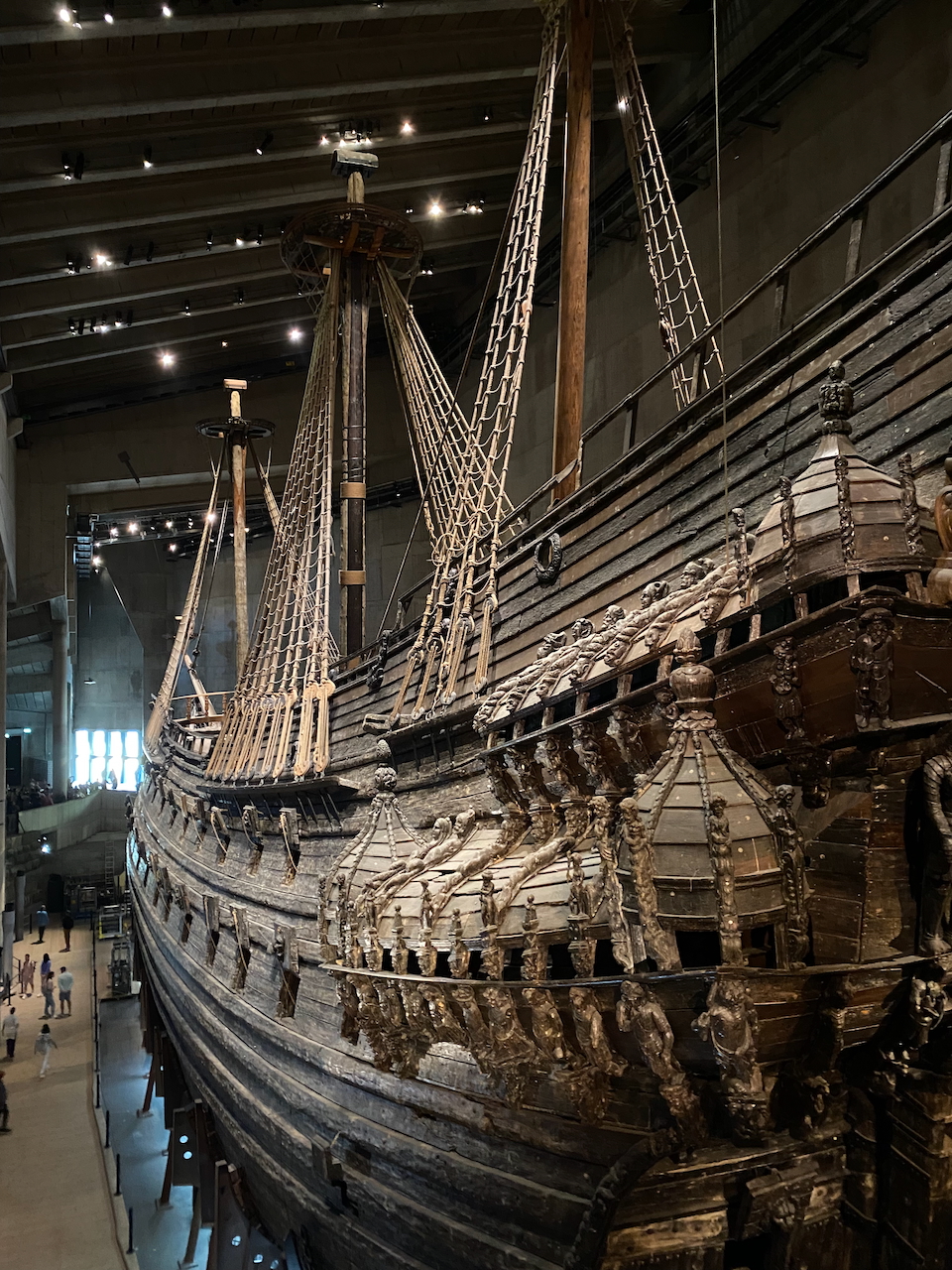 Der kleine Fußweg zum Wasa-Museum führt uns an verschiedenen anderen Museen vorbei, wie etwa das Abba-Museum, das Schiffswrack-Museum, das Schnapsmuseum und das große Nordische Museum. Wir haben heute nur Augen für die Vasa, jenem Schiff, dass zu den prunkvollsten seiner Zeit zählte und das 1628 nach nur 1300 Metern sank. Schon ein paar Jahre später geriet das Schiff zunehmend in Vergessenheit. Im Jahre 1961 befreite man das Schiff aus seinem nassen Grab und spendierte ihm ein Museum. Und genau dort werden wir uns die Vasa in seiner ursprünglichen Größe anschauen. Hier auf alle Details einzugehen könnte ein weiteres Buch füllen. Man beginnt seinen Rundgang durchs Museum, saugt jede Information hoch interessier auf und stellt mit fortlaufender Zeit erstaunt fest, wie die eigene Auffassungsgabe allmählich zurück geht. Irgendwann schlendert man nur noch durchs Museum, schaut sich um und lässt sich von den Eindrücken berieseln. Der eigene Informationsspeicher ist da längst gefüllt und meldet wahrheitsgemäß „Nix geht mehr!“. Trotzdem muss ich feststellen, dass das Schiff alle meine Erwartungen erfüllt. Würde ich nochmal in dieses Museum gehen und mir das gegen Verfall geschützte Holz eines inzwischen vierhundert Jahre alten Schiffes ansehen? Vielleicht…