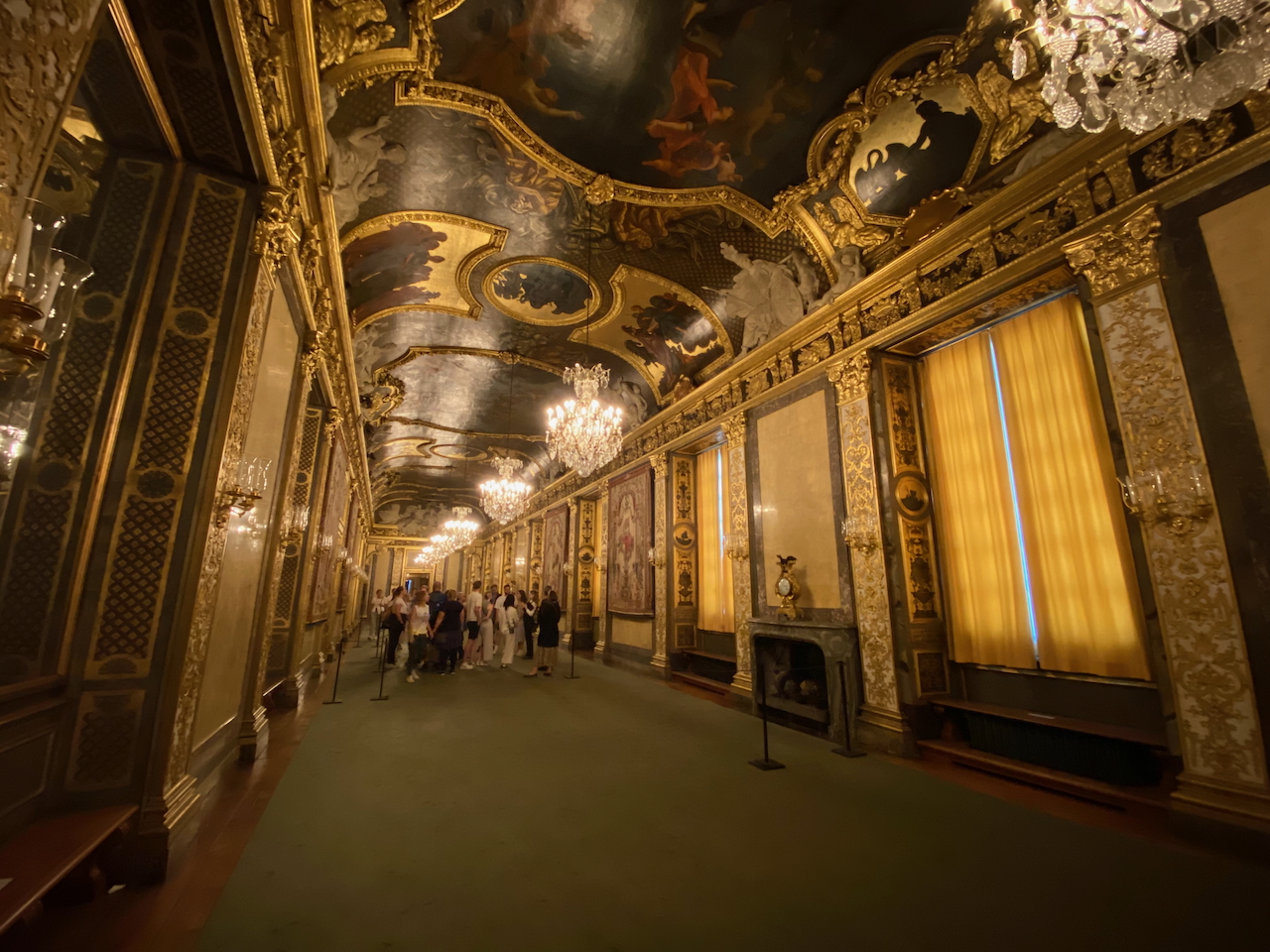 Nach der schatzbefreiten Schatzkammer besuchen wir nun das Schloss selbst. Dieses gehört in der Tat dem schwedischen König, auch wenn er sich nur zu repräsentativen oder zeremoniellen Zwecken hier aufhält. Dafür findet hier unter anderem das Dinner bei der Verleihung der Nobelpreise statt. Die öffentlichen Räume sind Museum wie auch Kunstgalerie in einem. Der Prunk kann sich sehen lassen. Die schwedischen Könige müssen stets fleißig und sehr sparsam gewesen sein, wenn sie soviel Reichtum ansammeln konnten. Nun, dieser Fließ ist schließlich Herrschern schon immer und überall in die Wiege gelegt worden.