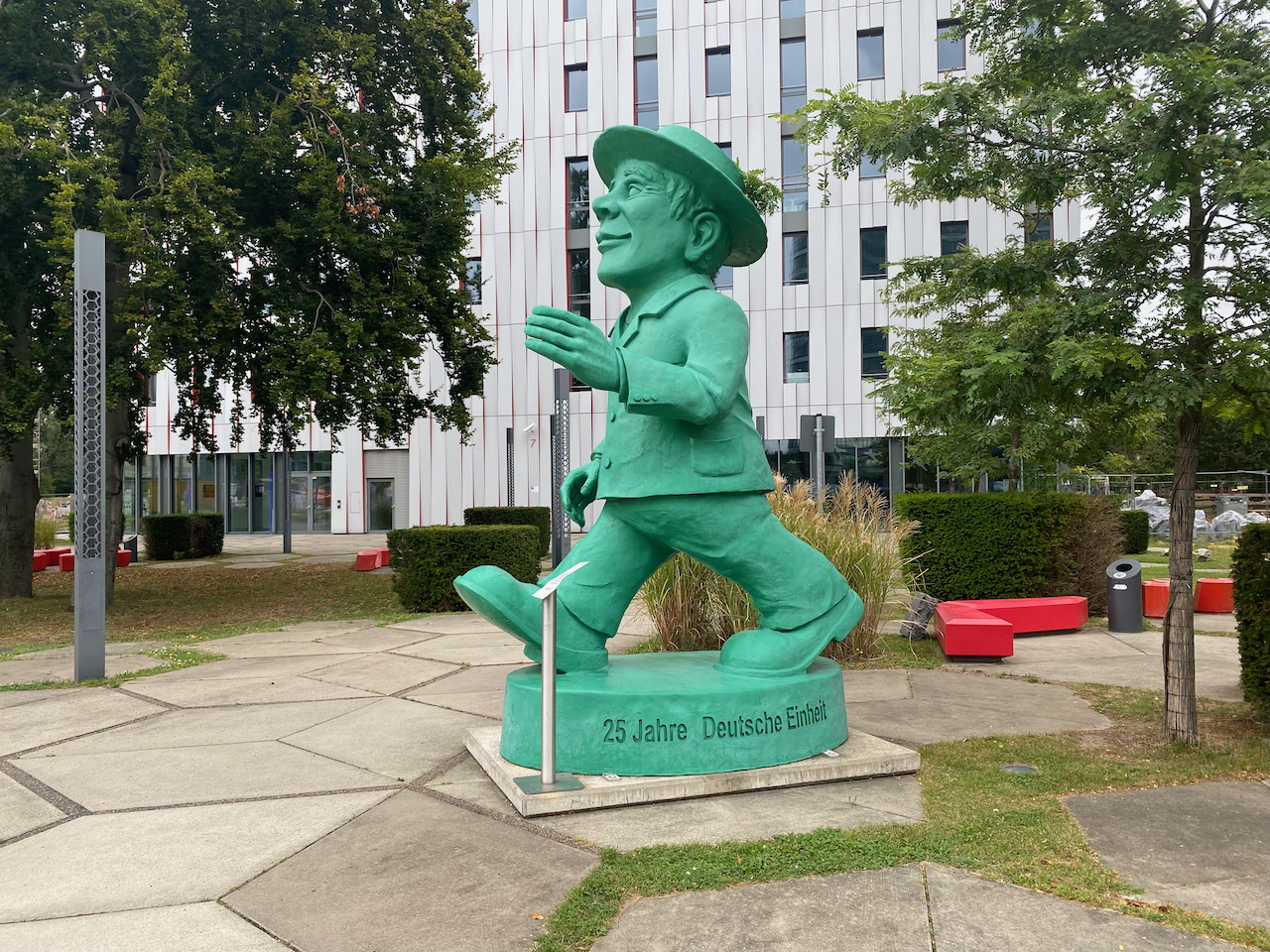 Dem Intermezzo an der Rezeption folgt die Fahrt mit dem Fahrstuhl in die sechste Etage. Es geht links den Gang hinauf und kurz darauf stehen wir im luxuriösesten Zimmer dieses Urlaubs, welches zugleich über eine eigene Dusche und WC verfügt. Die Minibar ist leider leer. Doch wir wollen uns nicht lange aufhalten, machen uns kurz frisch und dann geht's mit dem Fahrstuhl zurück ins Erdgeschoss. Wir haben ein Date mit Esthers Schwester und sind schon arg verspätet. Ein kleiner Spaziergang nach dem Wahnsinn der letzten Stunden tut uns sicher ganz gut. Wir finden das China-Restaurant und sitzen unterm freien Himmel. Der Abend verläuft harmonisch, es wird gelacht, gegessen und getrunken. Irgendwann geht's im Spazierschritt zurück zum Hotel, aber nicht ohne zuvor dem „Grünen Mann“, einer vier Meter hohen Statue des bekannten Ampelmännchens, einen kurzen Besuch abzustatten.